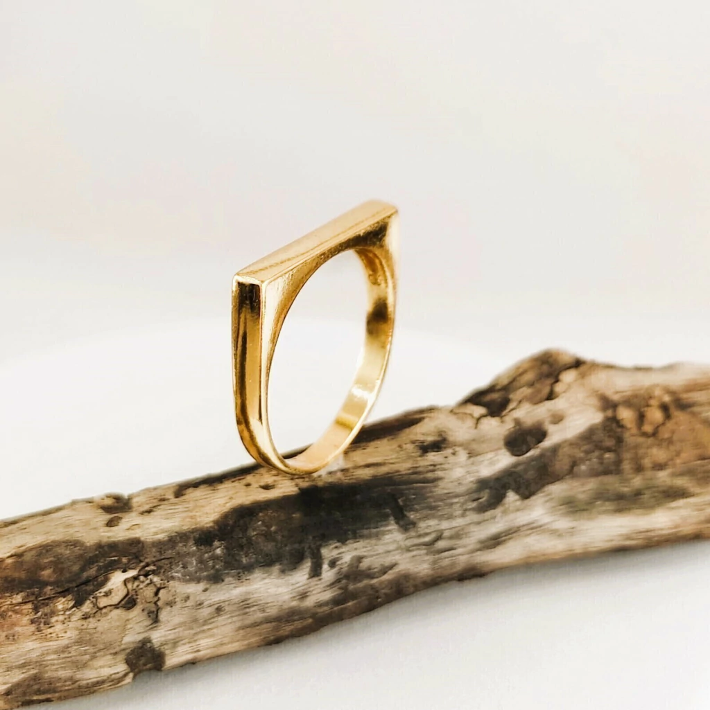 Anel Base Retangular – Sofisticação em Folheado a Ouro 18K