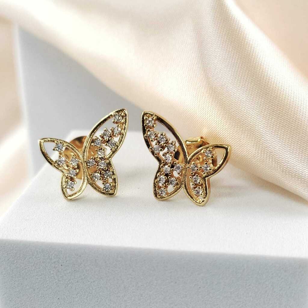 Brincos Borboleta Vazado, com Zircônias – Folheado a Ouro 18K