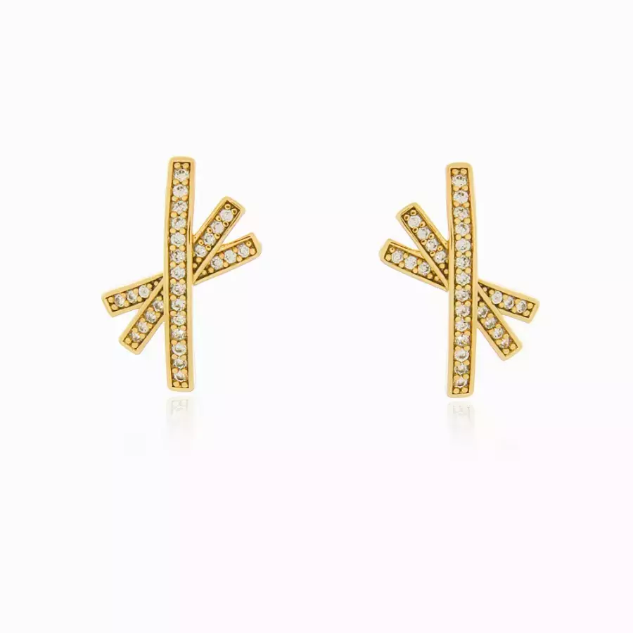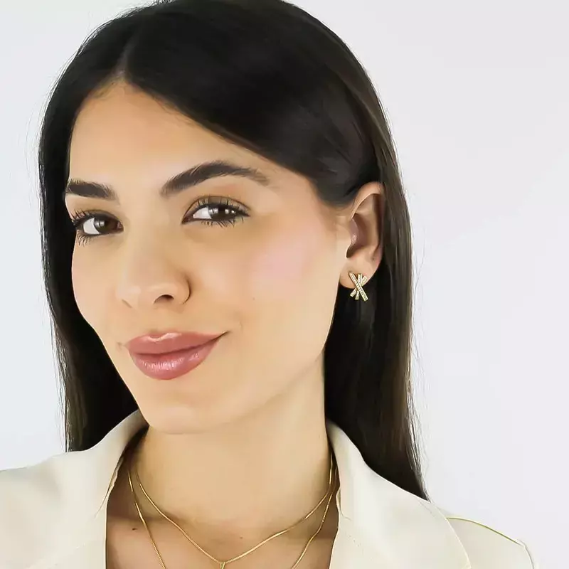 Brincos em X, Cravejados de Zircônias Cristais – Design Contemporâneo com Brilho Clássico