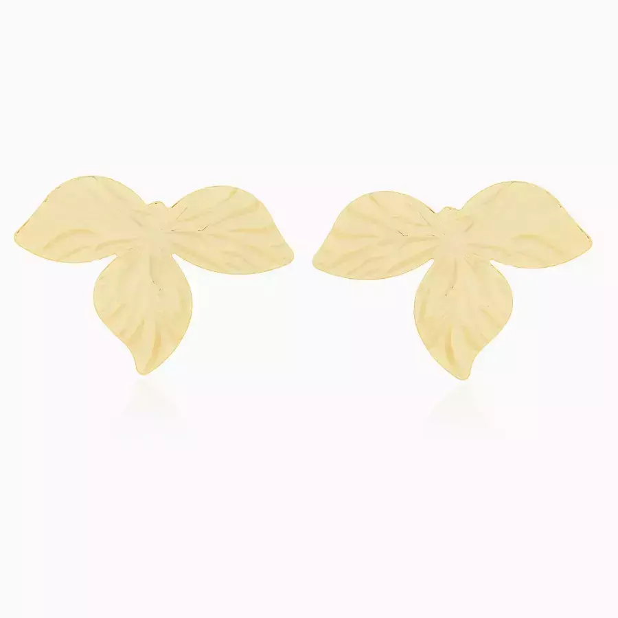 Inspirados nas formas orgânicas da natureza, os brincos folhas da Carmen Romana trazem um visual leve, marcante e cheio de personalidade. Com textura detalhada, medem 43x30mm e são folheados a ouro 18K, combinando delicadeza com presença.