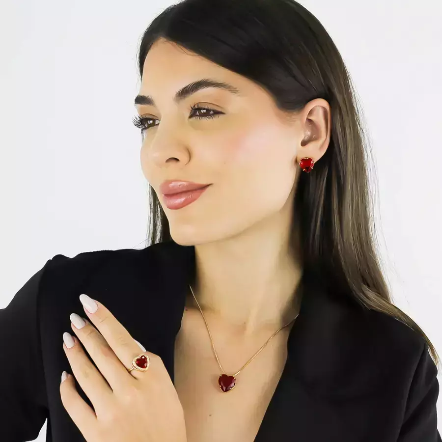 Este conjunto da Carmen Romana é a escolha perfeita para quem ama semijoias delicadas e com brilho marcante. Composto por corrente veneziana, pingente em formato de coração com pedra central em zircônia, e brincos combinando, é um clássico que nunca sai de moda.