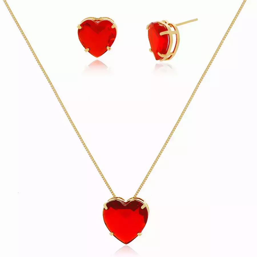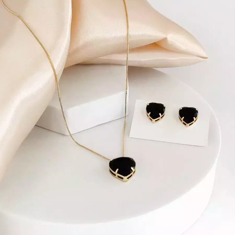 Conjunto Coração com Zircônias – Elegância em Cada Detalhe