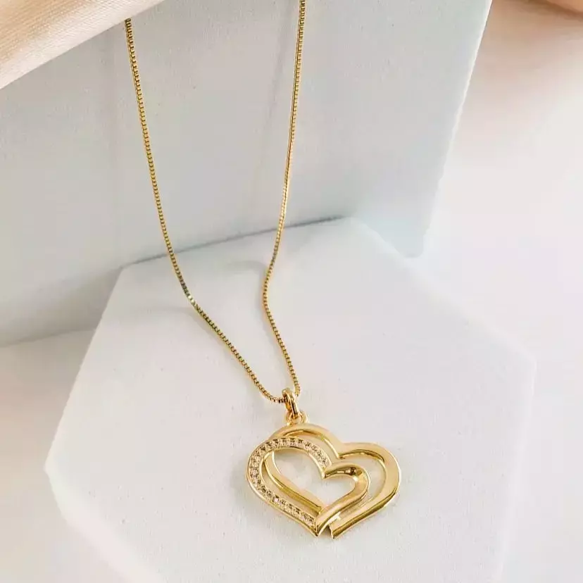 Pingente Coração Duplo Vazado com Zircônias – Romantismo em Detalhes Brilhantes