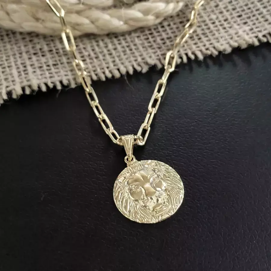 Pingente Medalha com Leão em Alto-Relevo – Força e Estilo no Seu Visual
