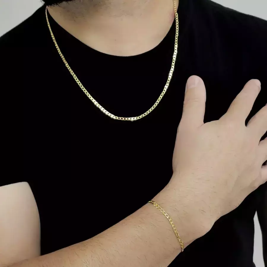 A pulseira Grumet Flat da Carmen Romana é uma escolha refinada para homens que valorizam acessórios discretos e sofisticados. Com elos planos e acabamento polido, oferece conforto no uso e um visual moderno que se adapta a diversas ocasiões.